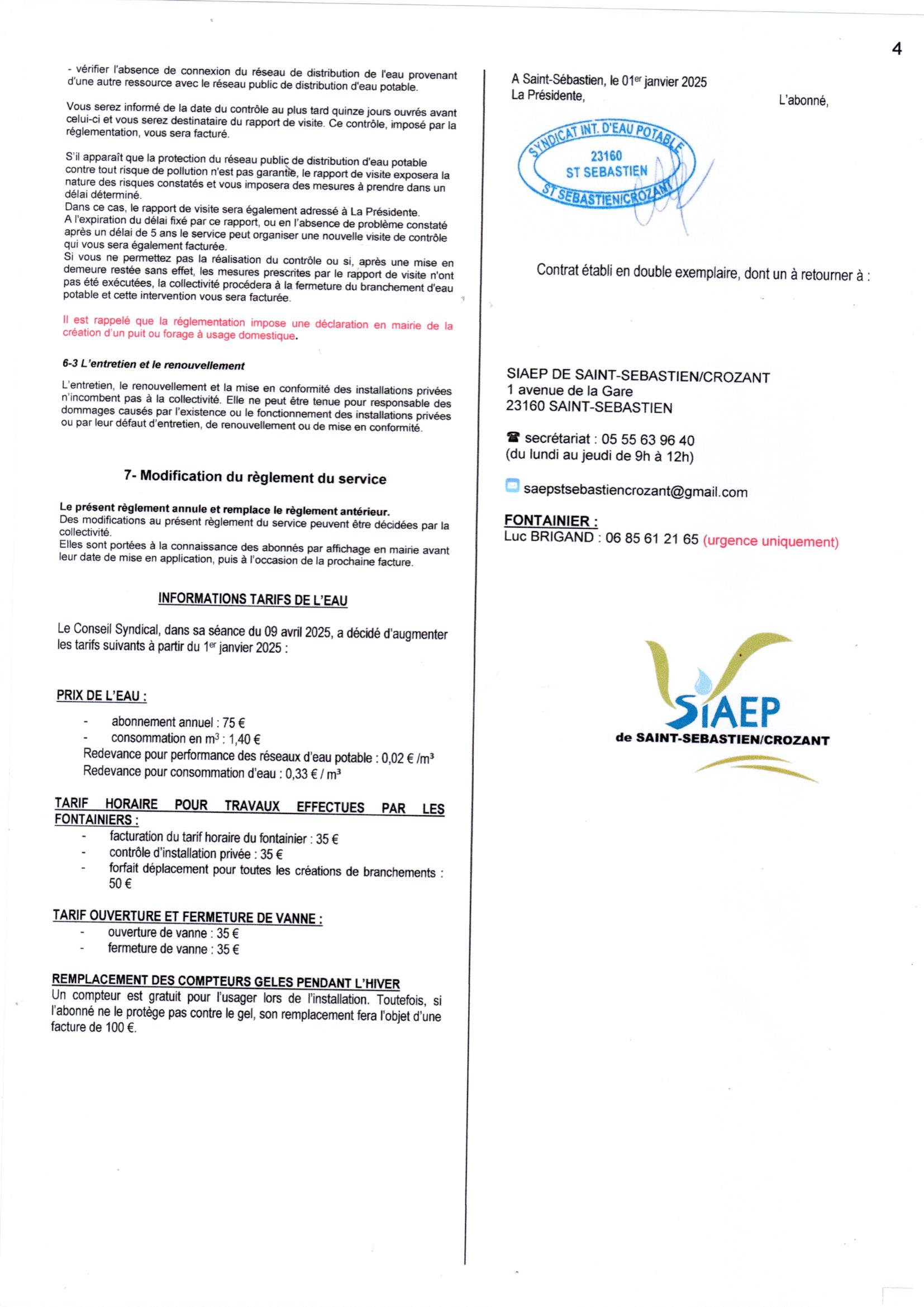 SIAEP DE ST SEBASTIEN CROZANT